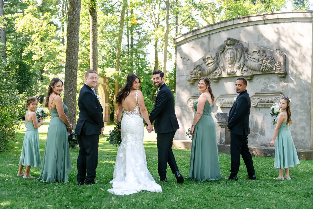 The Guild Inn’s expansive outdoor spaces made it easy to capture fun, dynamic shots with their wedding party. Their friends kept the energy high, creating genuine expressions and candid moments that feel true to the celebration.