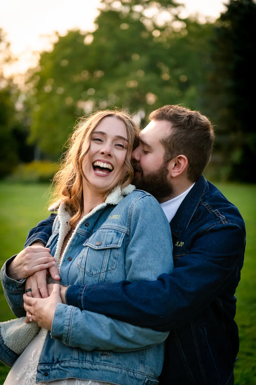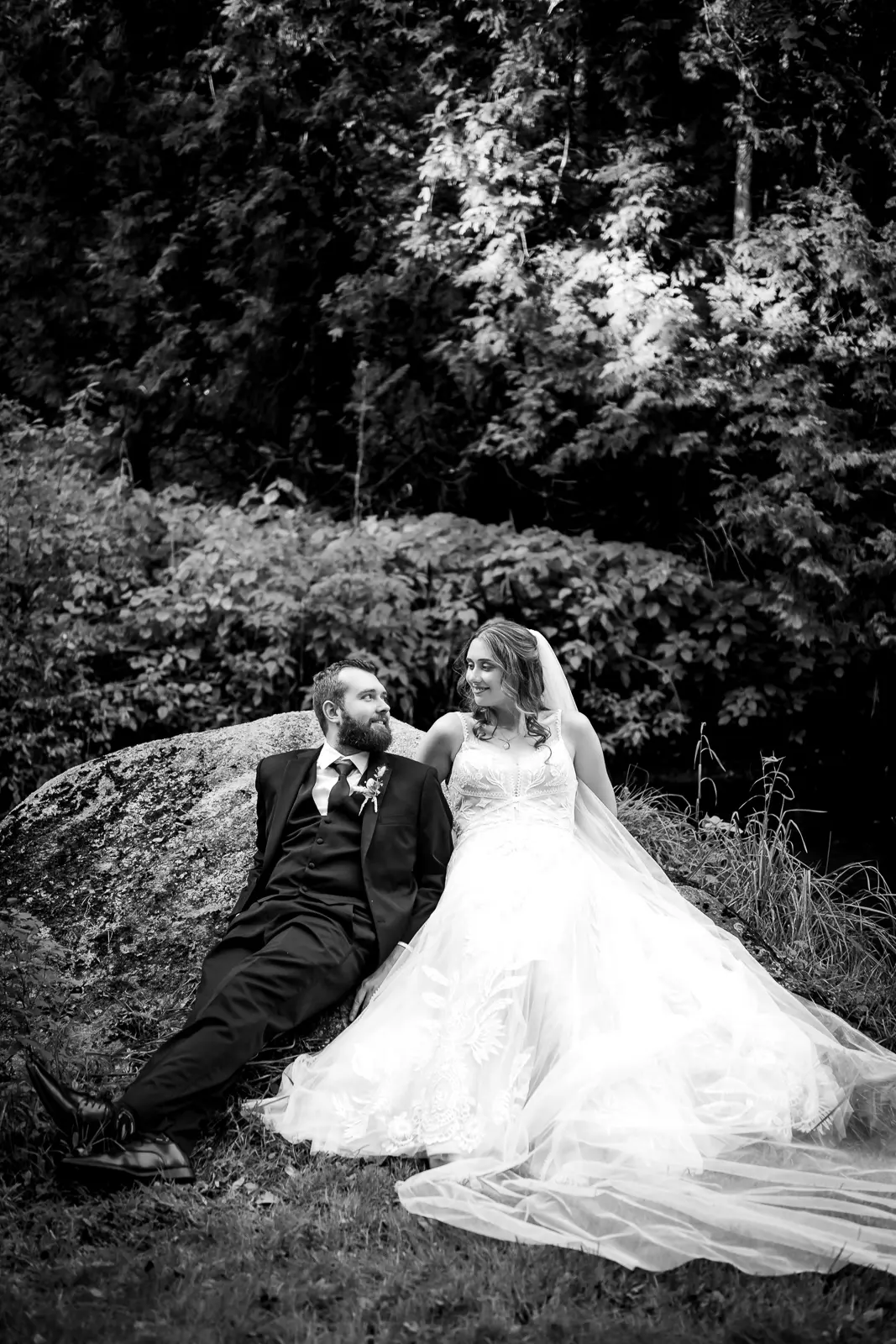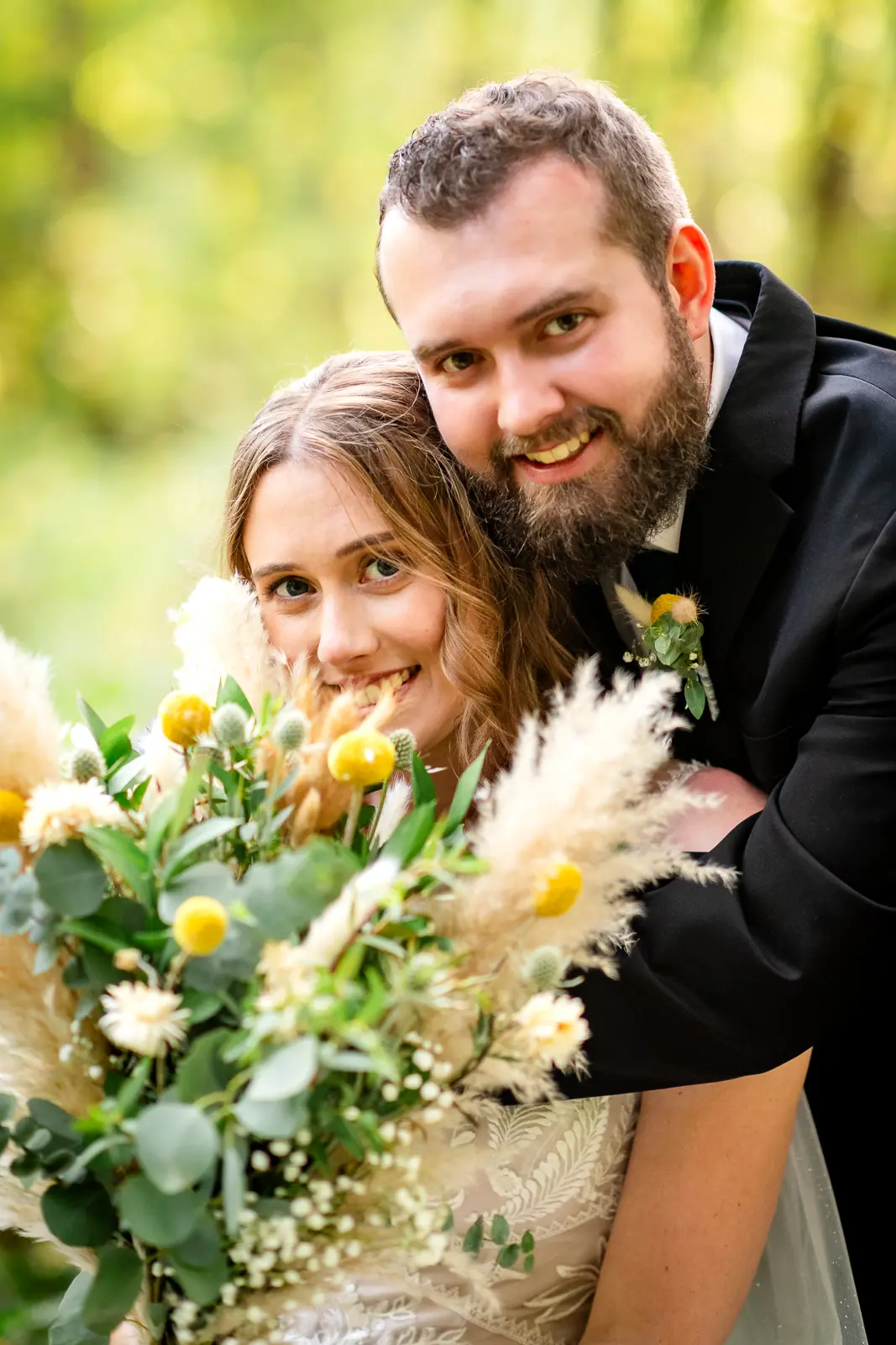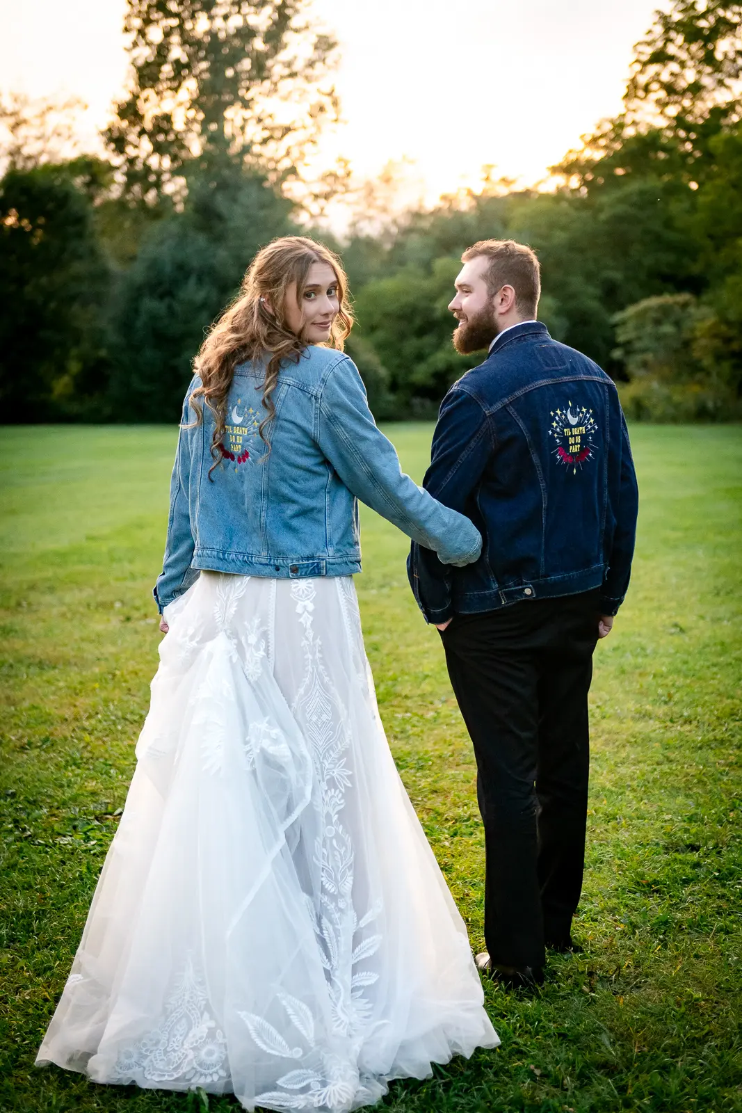 We then headed into the woods for bridal party and couple portraits. Homegrown Hideaway is ideal for this. A river runs nearby, and as the sun dipped lower, light splashed beautifully through the trees, wrapping everyone in a soft golden glow. The mix of forest, water, and warm light gave their portraits a timeless, storybook feel.