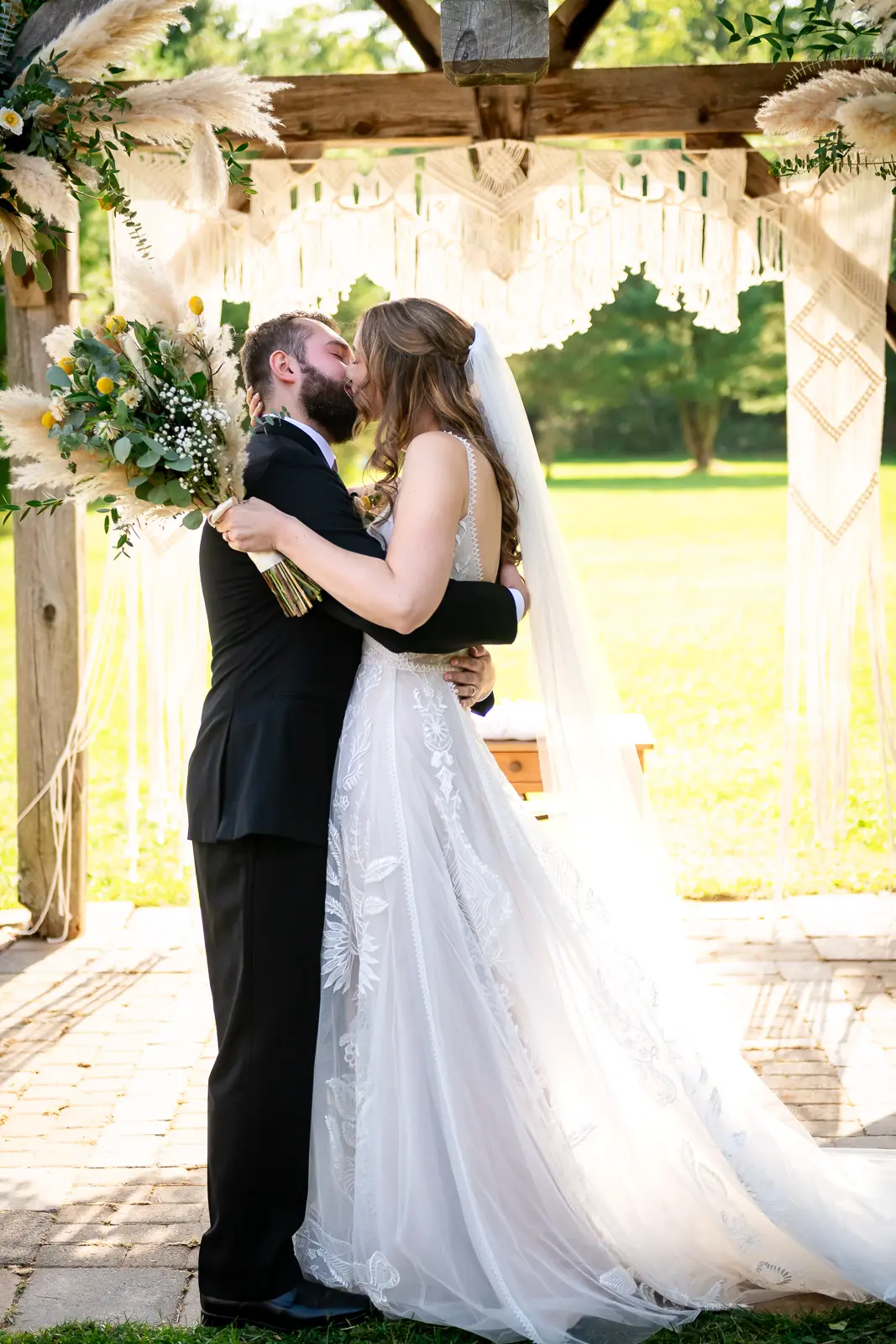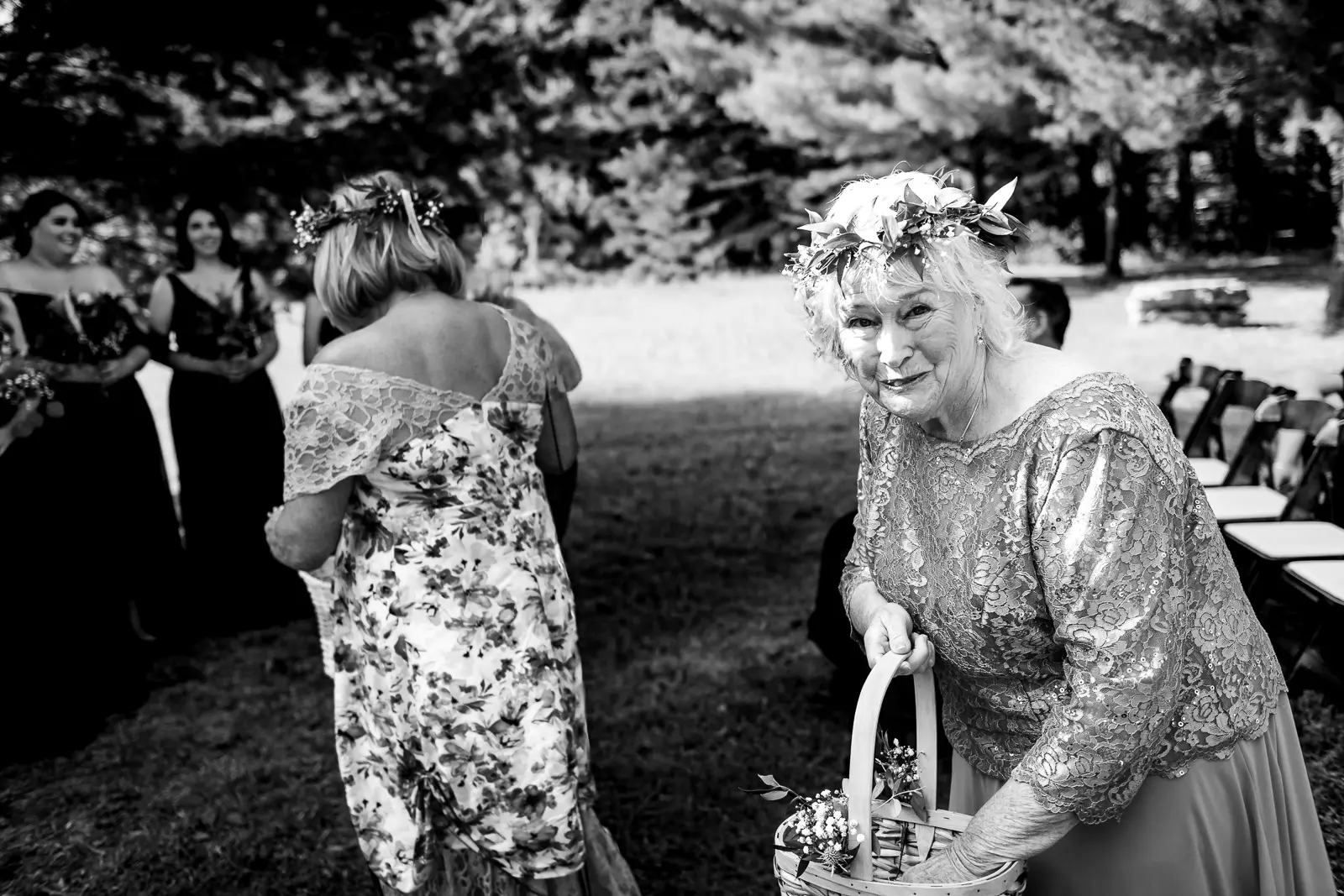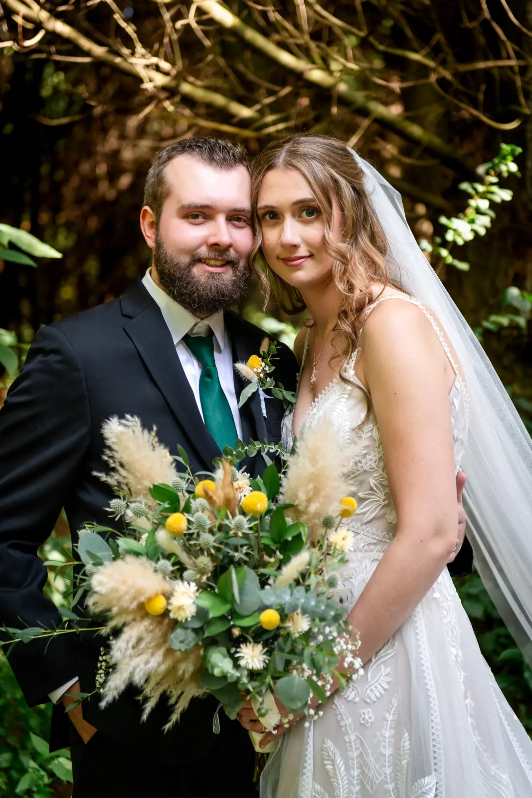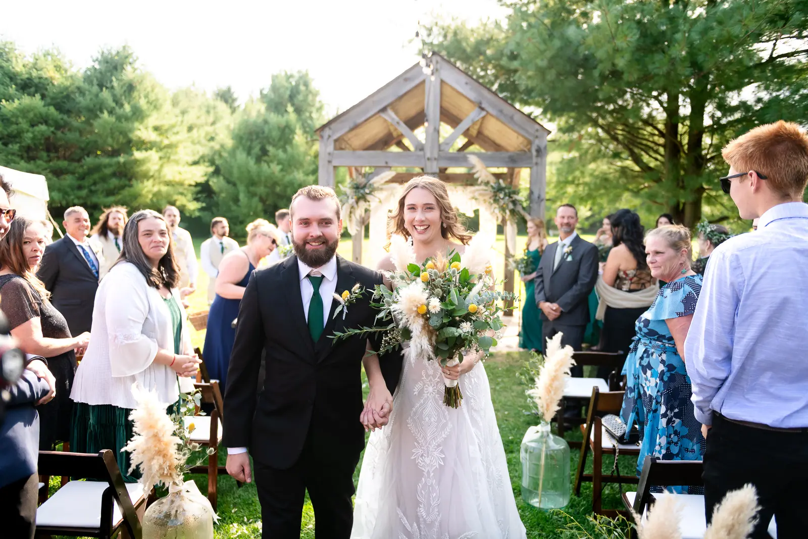 The ceremony was held surrounded by trees, with sunlight filtering through the leaves. One of the most memorable touches was the flower grannies, who brought smiles to everyone’s faces as they made their way down the aisle. When Jessica walked in, Nathan’s reaction said everything. He was visibly emotional, taking in the moment as she approached, and it set a deeply heartfelt tone for the ceremony that followed.