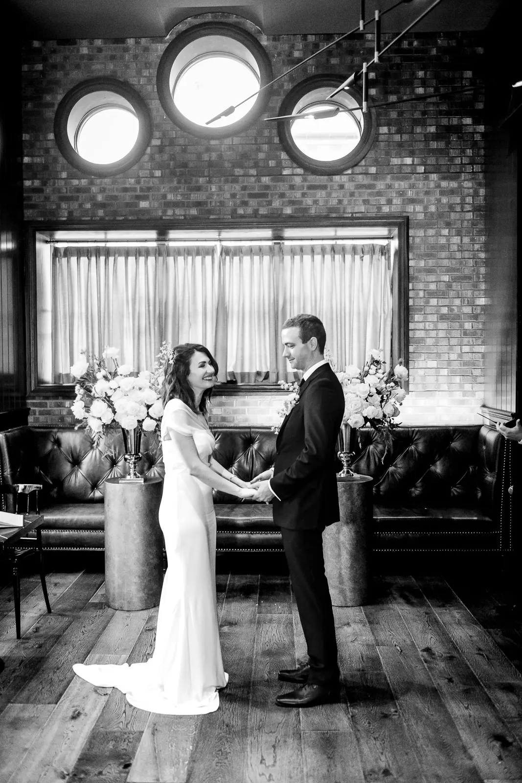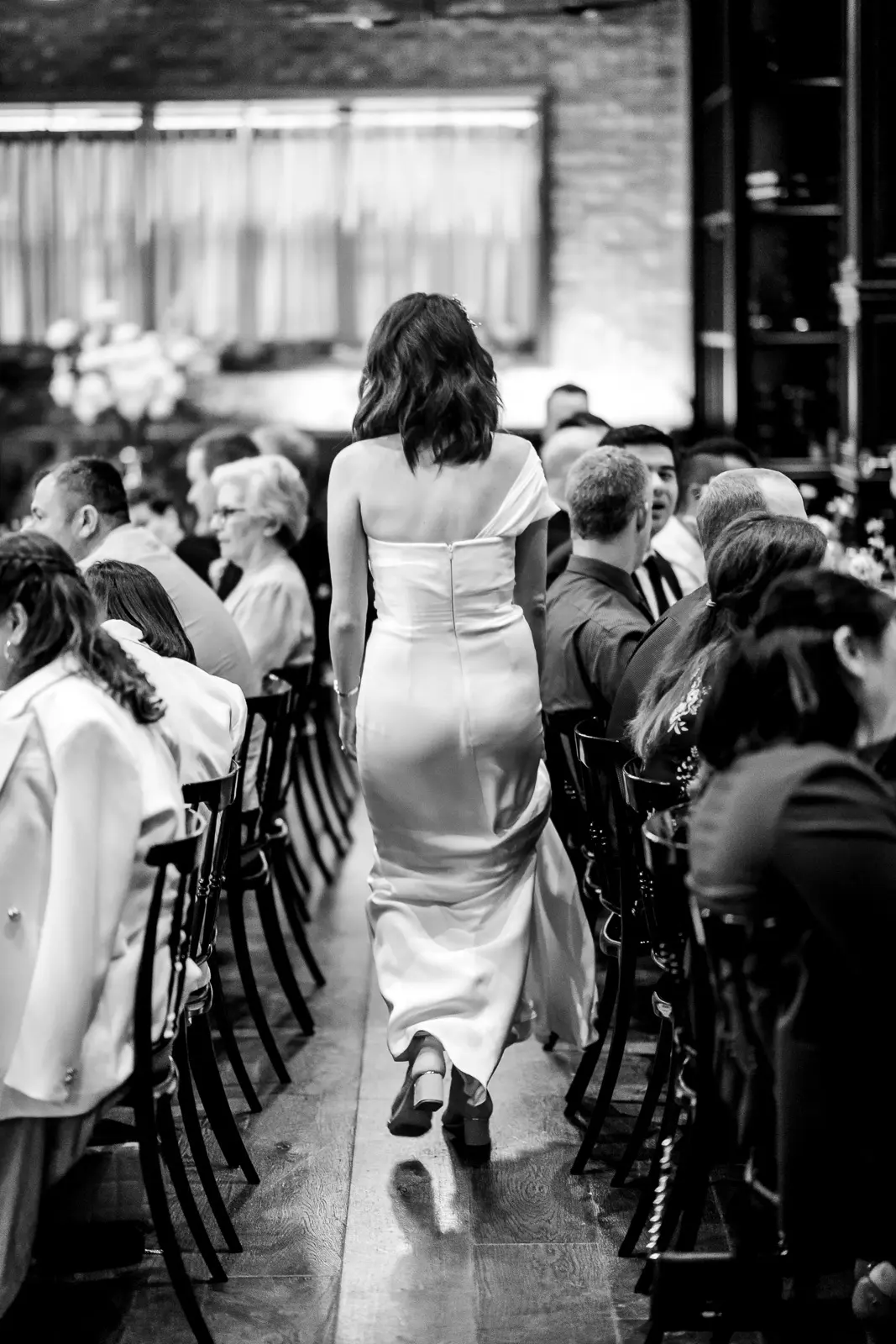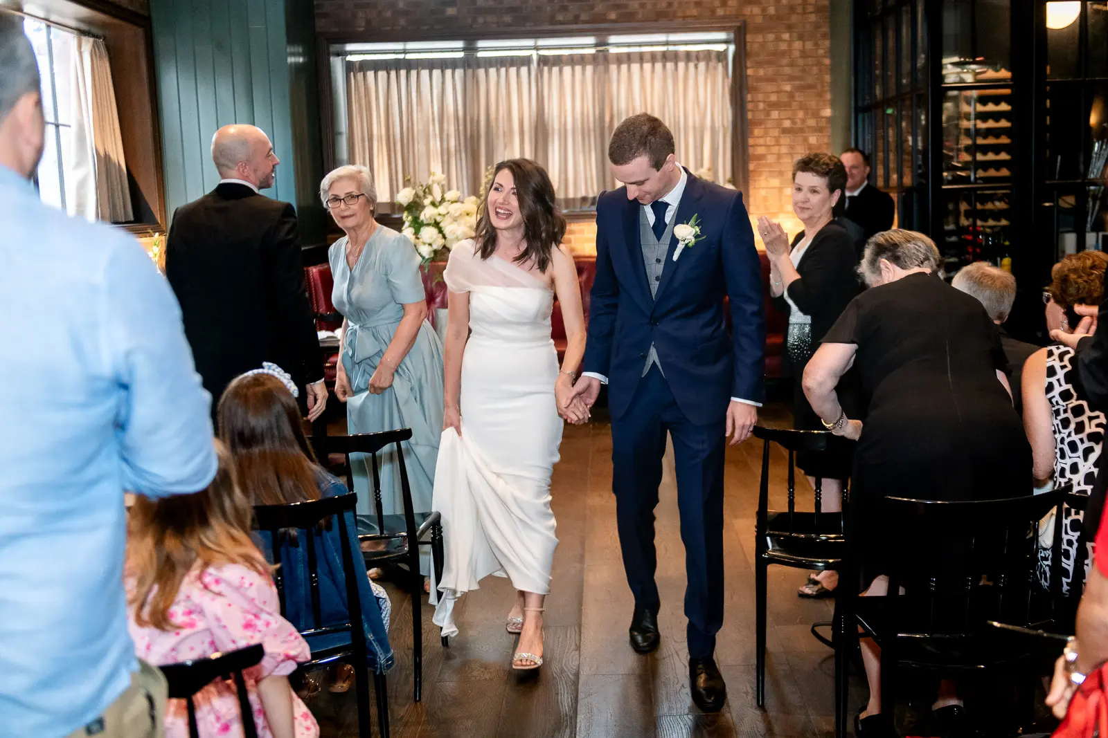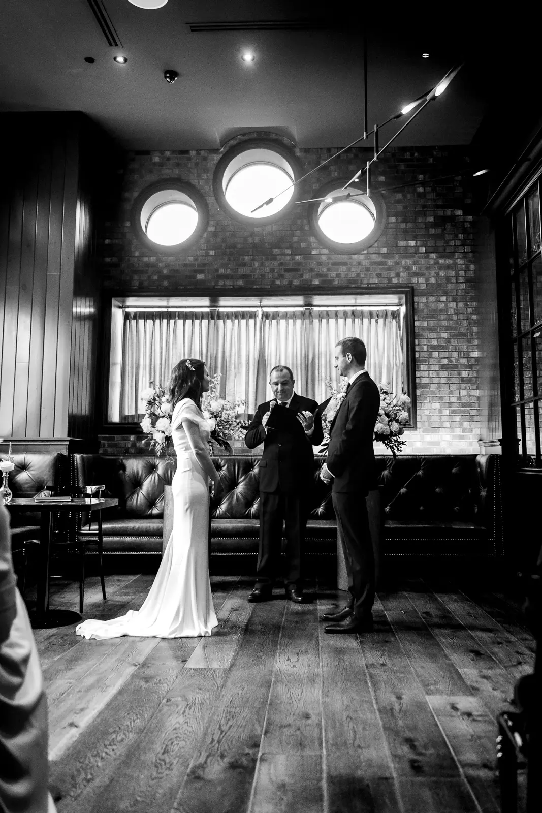 The space had been transformed completely—tables cleared and replaced with ceremony seating, allowing the room to breathe differently. The lighting was low and atmospheric, with an understated art deco elegance that matched the building’s heritage perfectly.