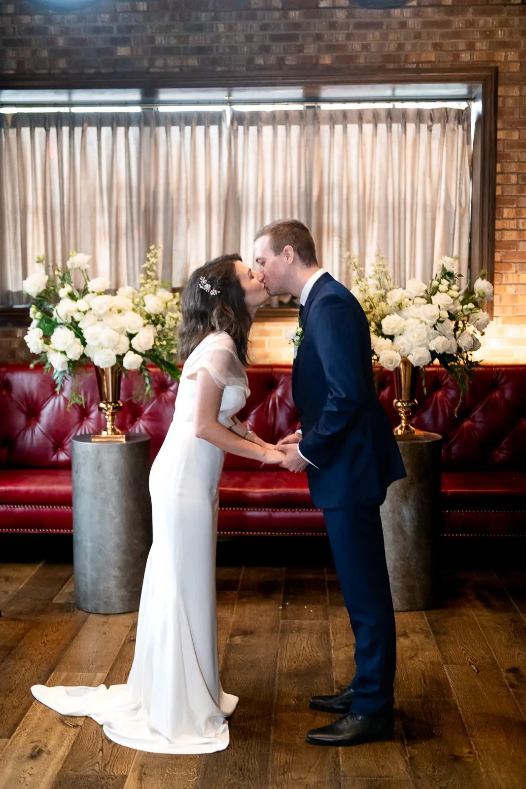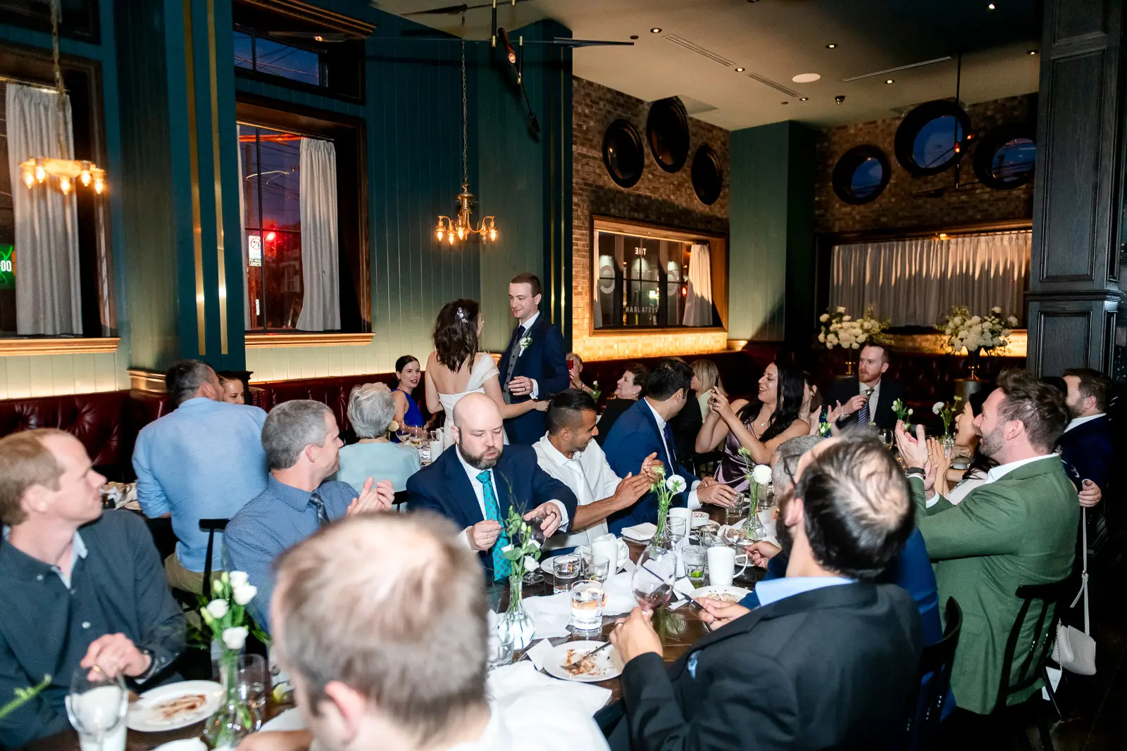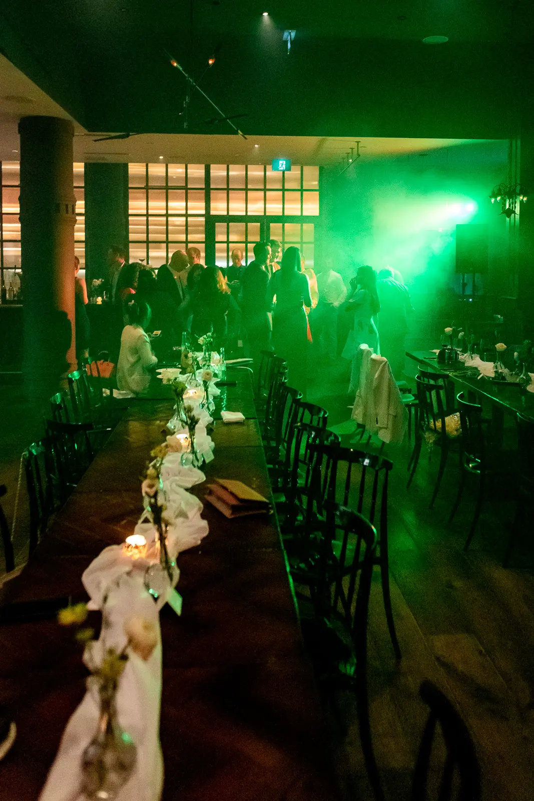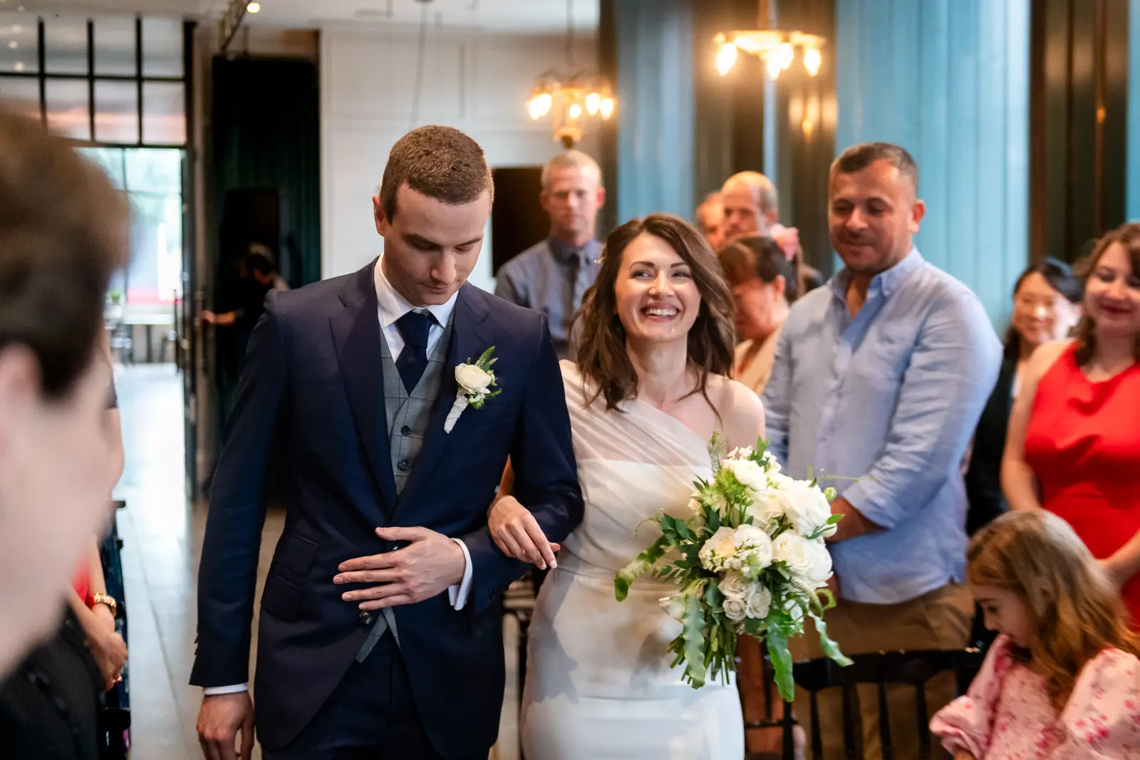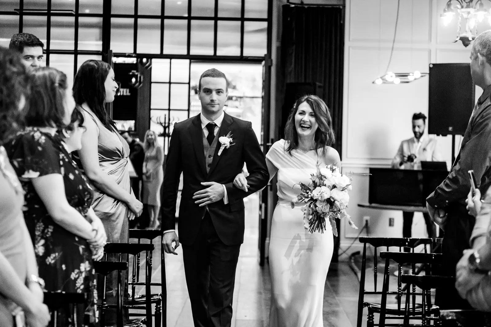 The space had been transformed completely—tables cleared and replaced with ceremony seating, allowing the room to breathe differently. The lighting was low and atmospheric, with an understated art deco elegance that matched the building’s heritage perfectly.