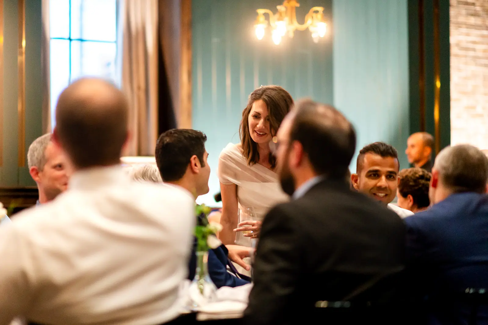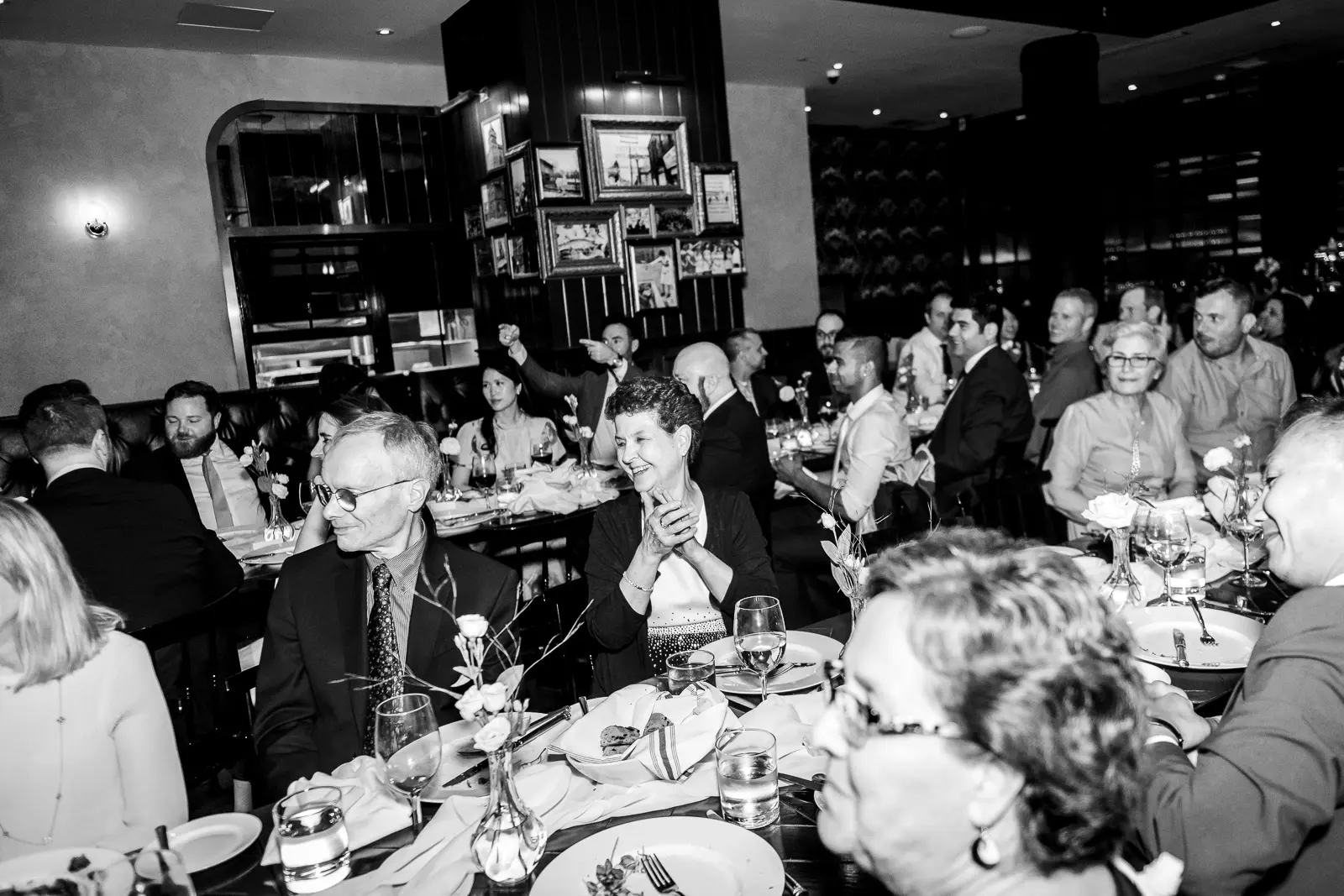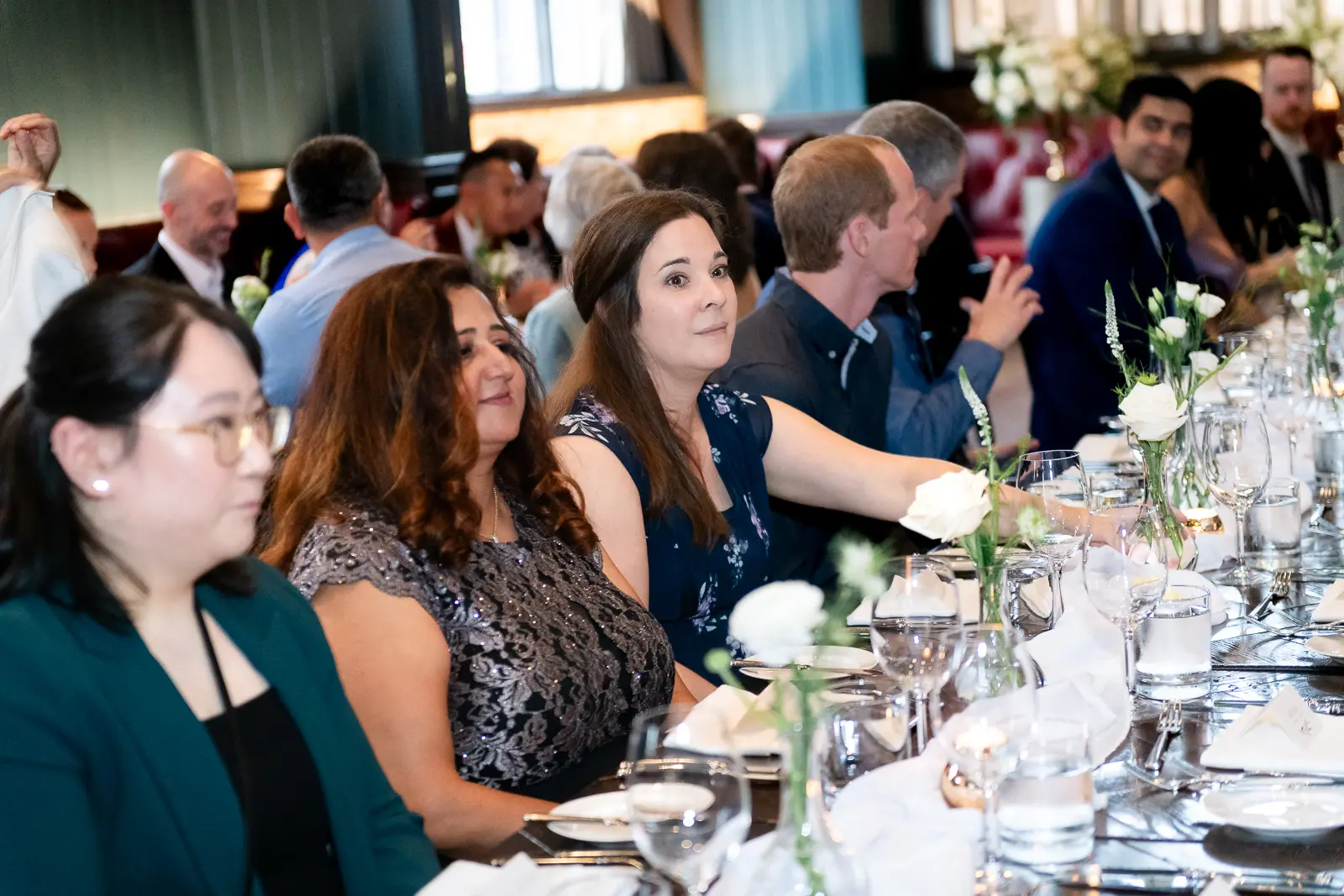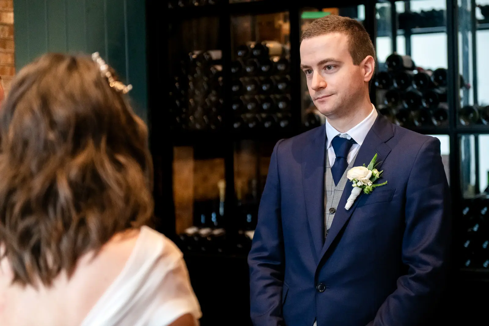 The space had been transformed completely—tables cleared and replaced with ceremony seating, allowing the room to breathe differently. The lighting was low and atmospheric, with an understated art deco elegance that matched the building’s heritage perfectly.